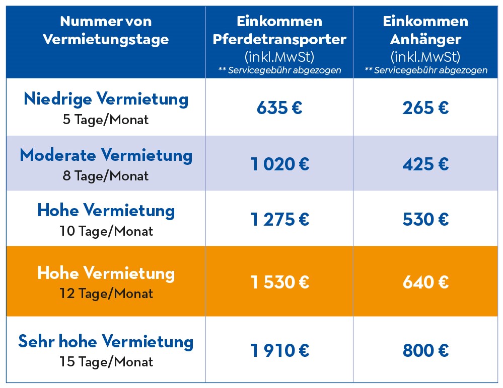Der Pferdetransporter kann nur mit der entsprechenden Versicherung vermietet werden und die Vermietung kann steuerpflichtig sein.
